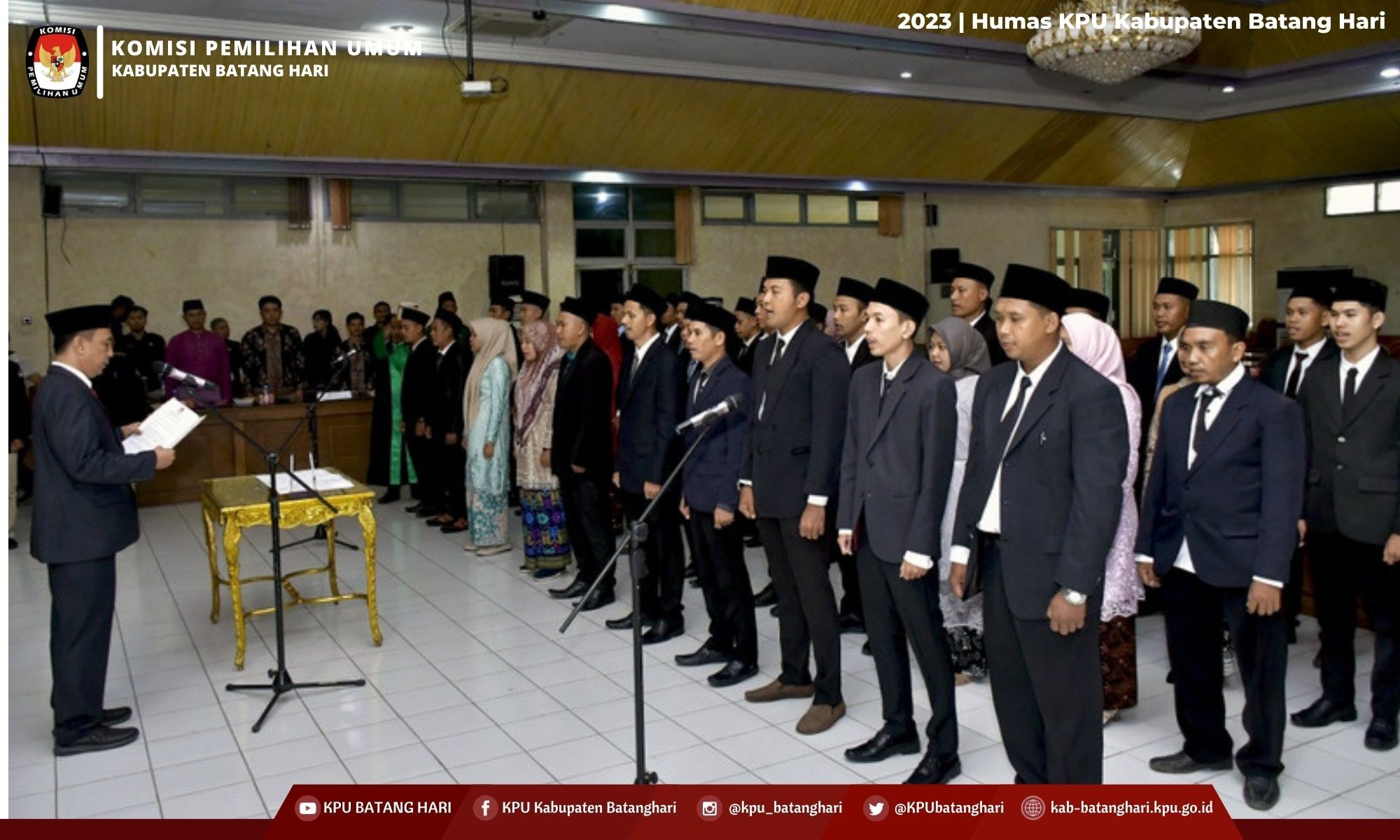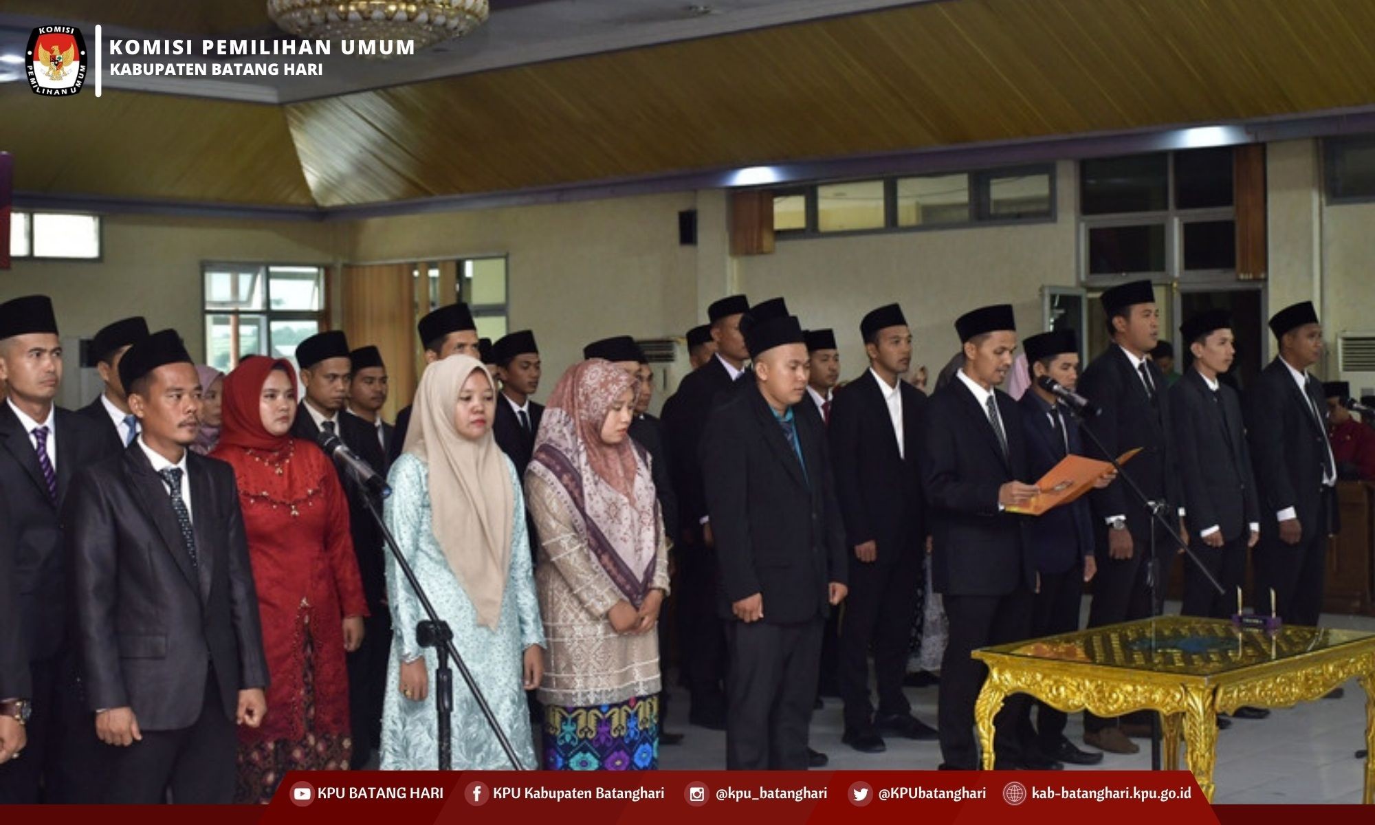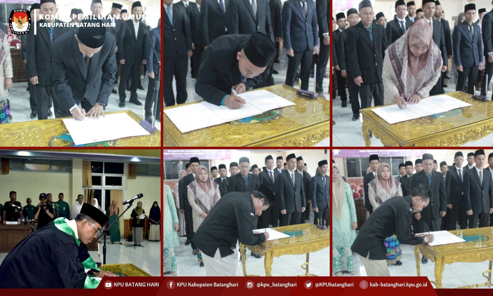 Pelantikan berlangsung khidmat, ditandai dengan penandatanganan berita acara sumpah, pelantikan oleh Ketua KPU Kabupaten Batang Hari serta pembacaan dan penandatanganan pakta integritas oleh seluruh PPK dengan disaksikan oleh Bupati Batang Hari Mhd. Fadhil Arif, Forkompinda Kabupaten Batang Hari, Bawaslu Kabupaten Batang Hari, OPD terkait dan Camat se-Kabupaten Batang Hari.