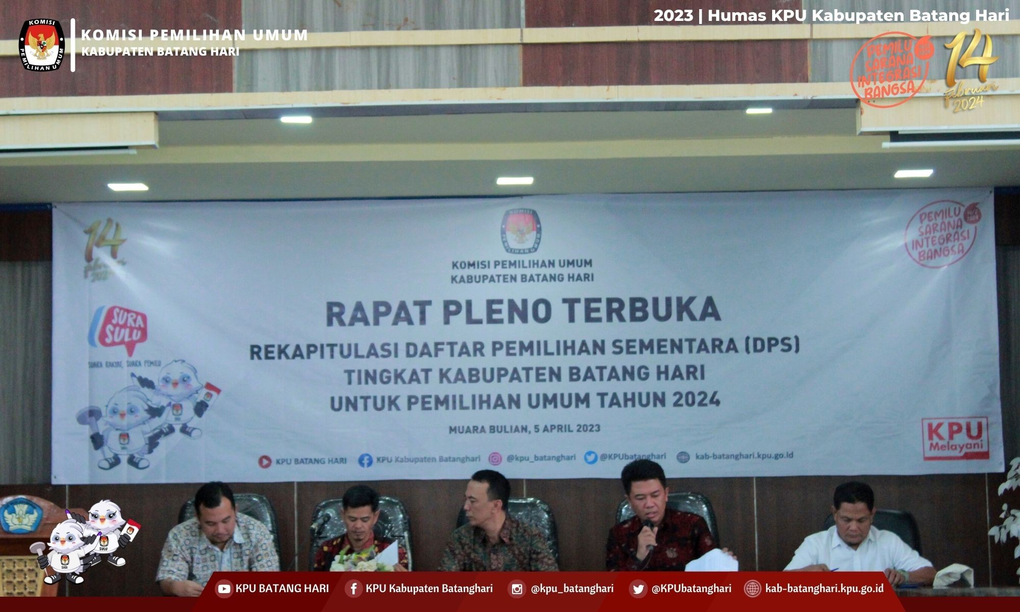 Rapat Pleno menetapkan jumlah DPS di Kabupaten Batang Hari sejumlah 223.777 Pemilih dengan jumlah Pemilih Laki-laki sebanyak 114.214 Pemilih dan Perempuan sebanyak 109.563 Pemilih yang tersebar di 908 TPS dalam Kabupaten Batang Hari. Penetapan tersebut dituangkan dalam Berita Acara dan dibacakan langsung oleh Ketua KPU Kabupaten Batang Hari.