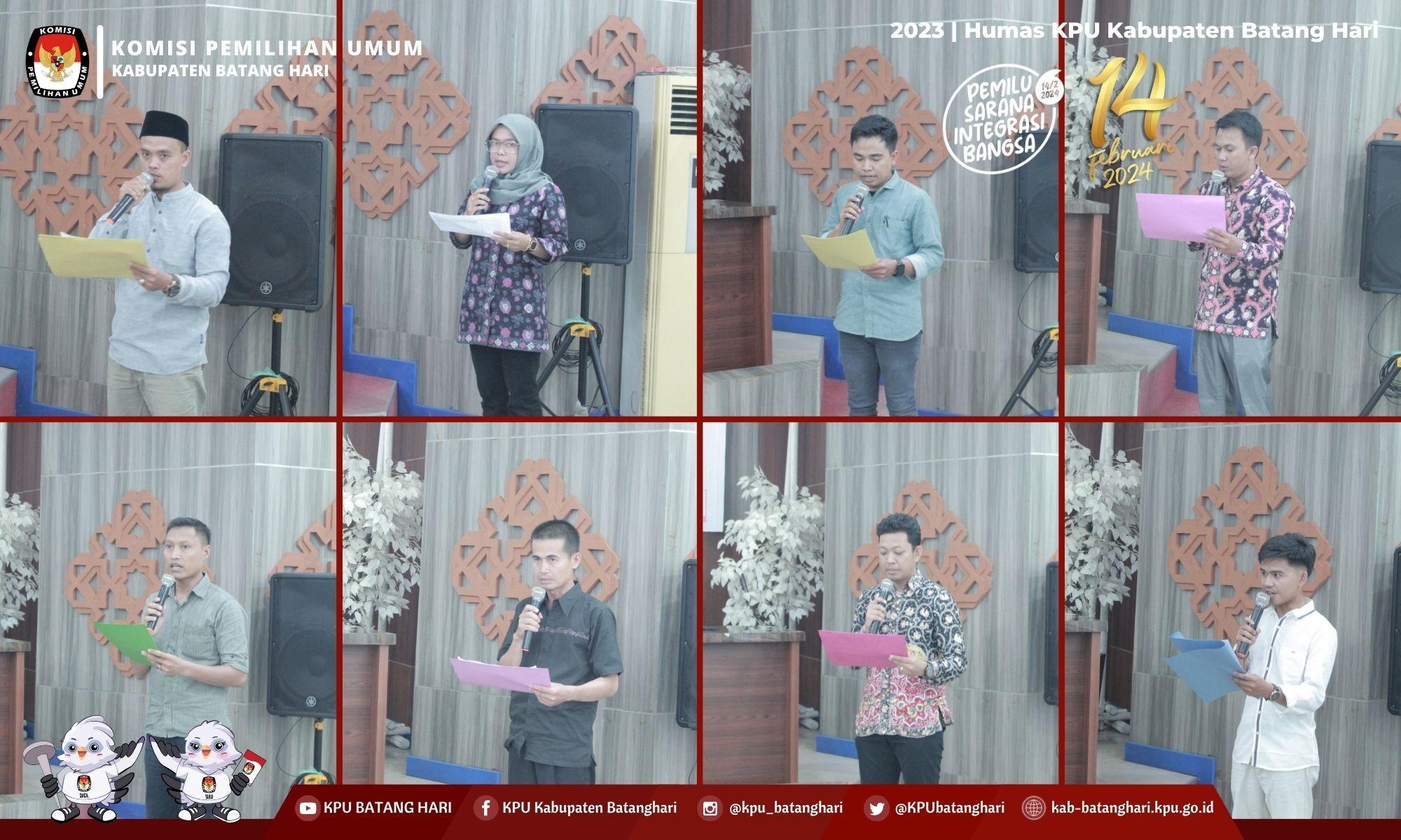 KPU Kabupaten Batang Hari masih terus menghimbau masyarakat untuk memastikan namanya telah terdaftar sebagai pemilih pada Pemilihan Umum Tahun 2024 dengan cara mengunjungi laman https://cekdptonline.kpu.go.id/ dan melakukan pengecekan dengan melakukan pencarian berbasis NIK. Apabila belum terdaftar sebagai pemilih agar segera melapor kepada penyelenggara Pemilu di tingkat Desa/Kelurahan, Kecamatan atau ke KPU Kabupaten Batang Hari dengan membawa identitas diri.
