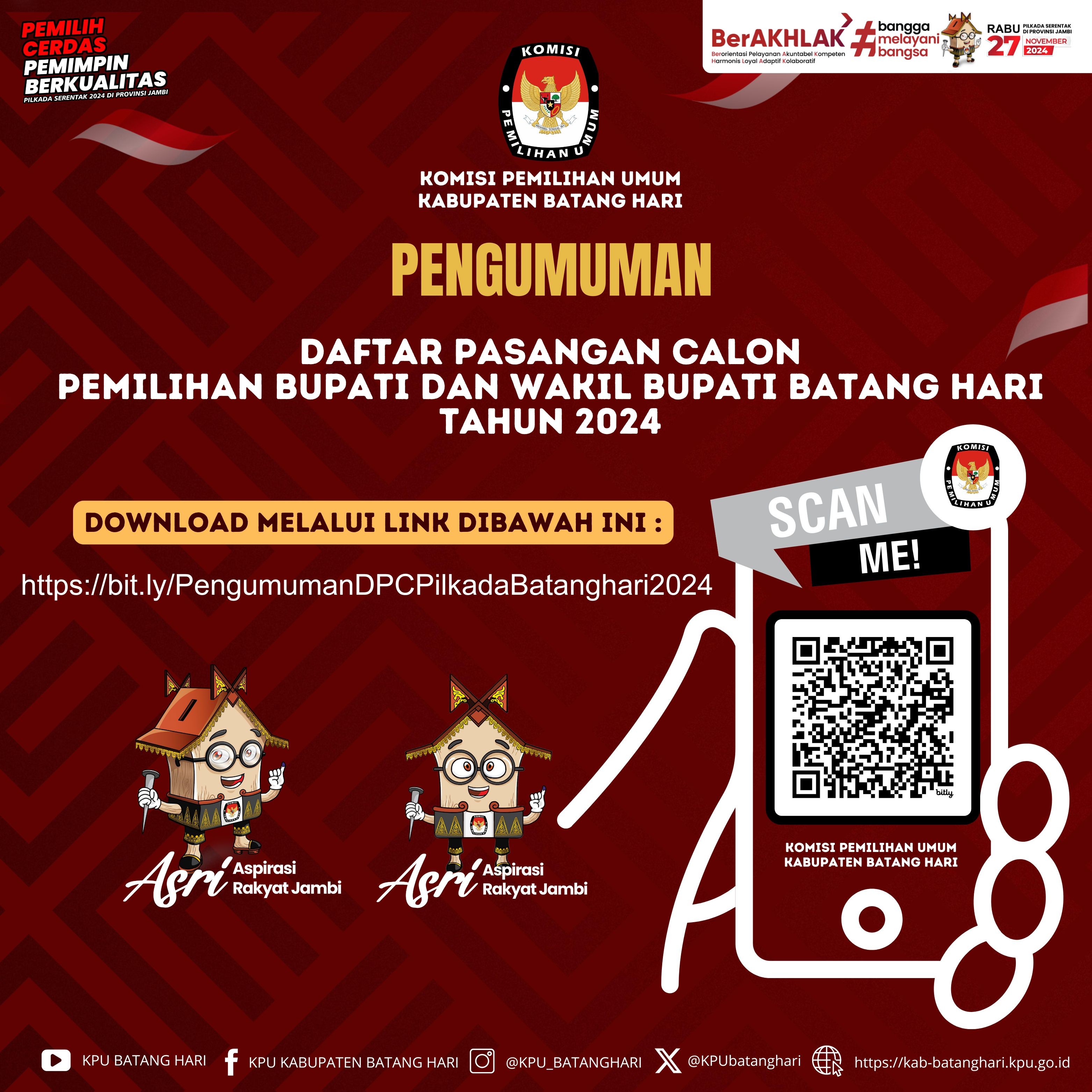 Akses dengan melakukan Scan Barcode atau download melalui link bit.ly/PengumumanDPCPilkadaBatanghari2024