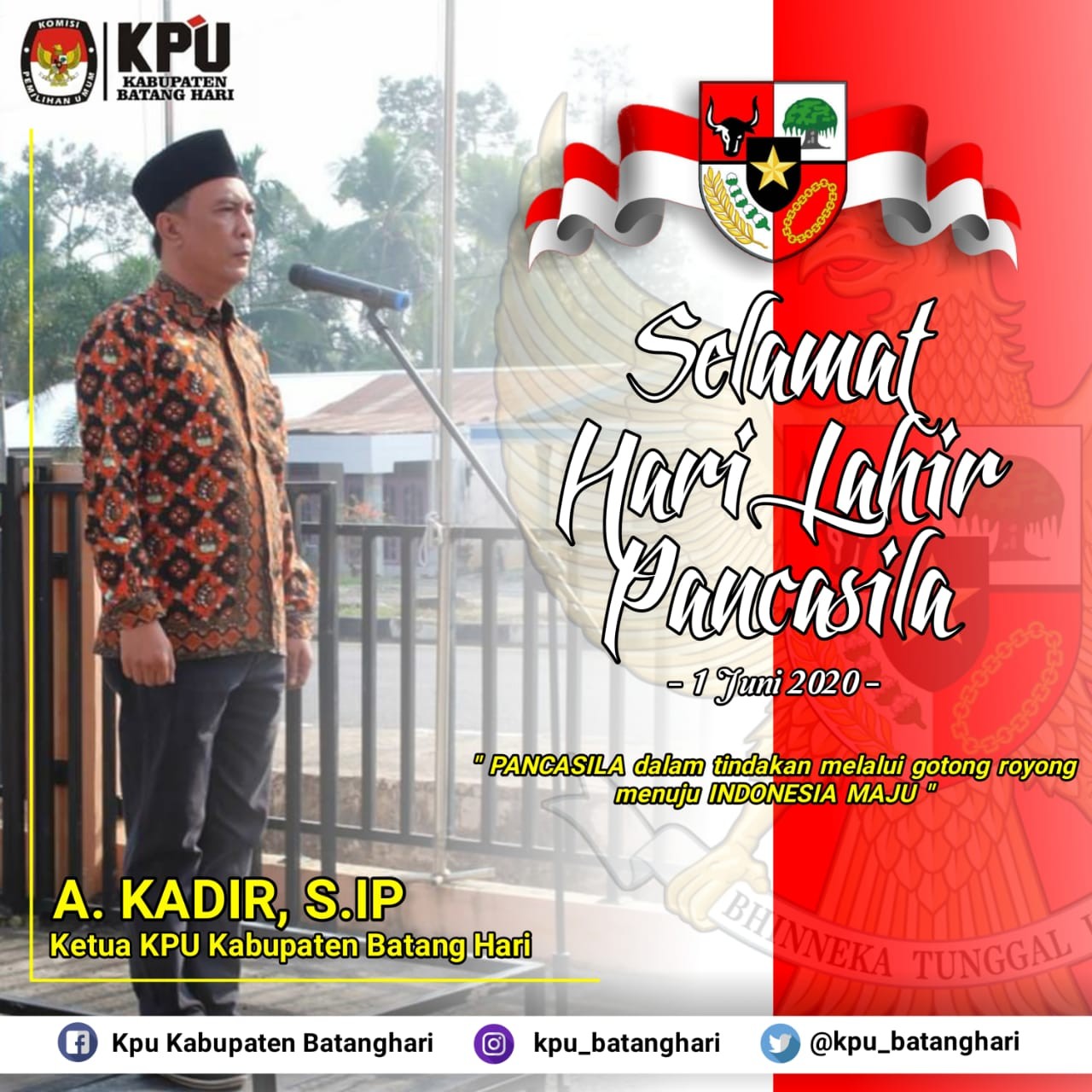 Komisi Pemilihan Umum Kabupaten Batang Hari mengucapkan Selamat Hari Lahir Pancasila 01 Juni 2020 "PANCASILA dalam Tindakan melalui Gotong Royong menuju INDONESIA MAJU"