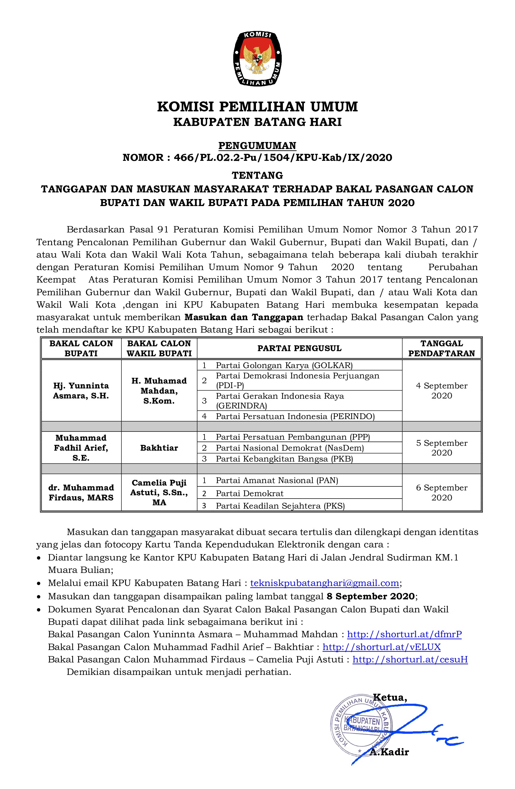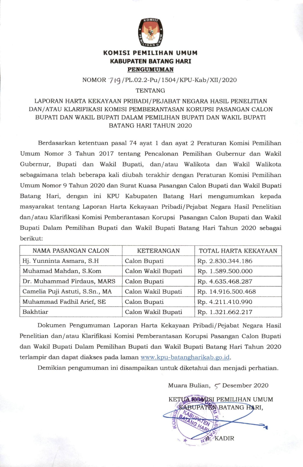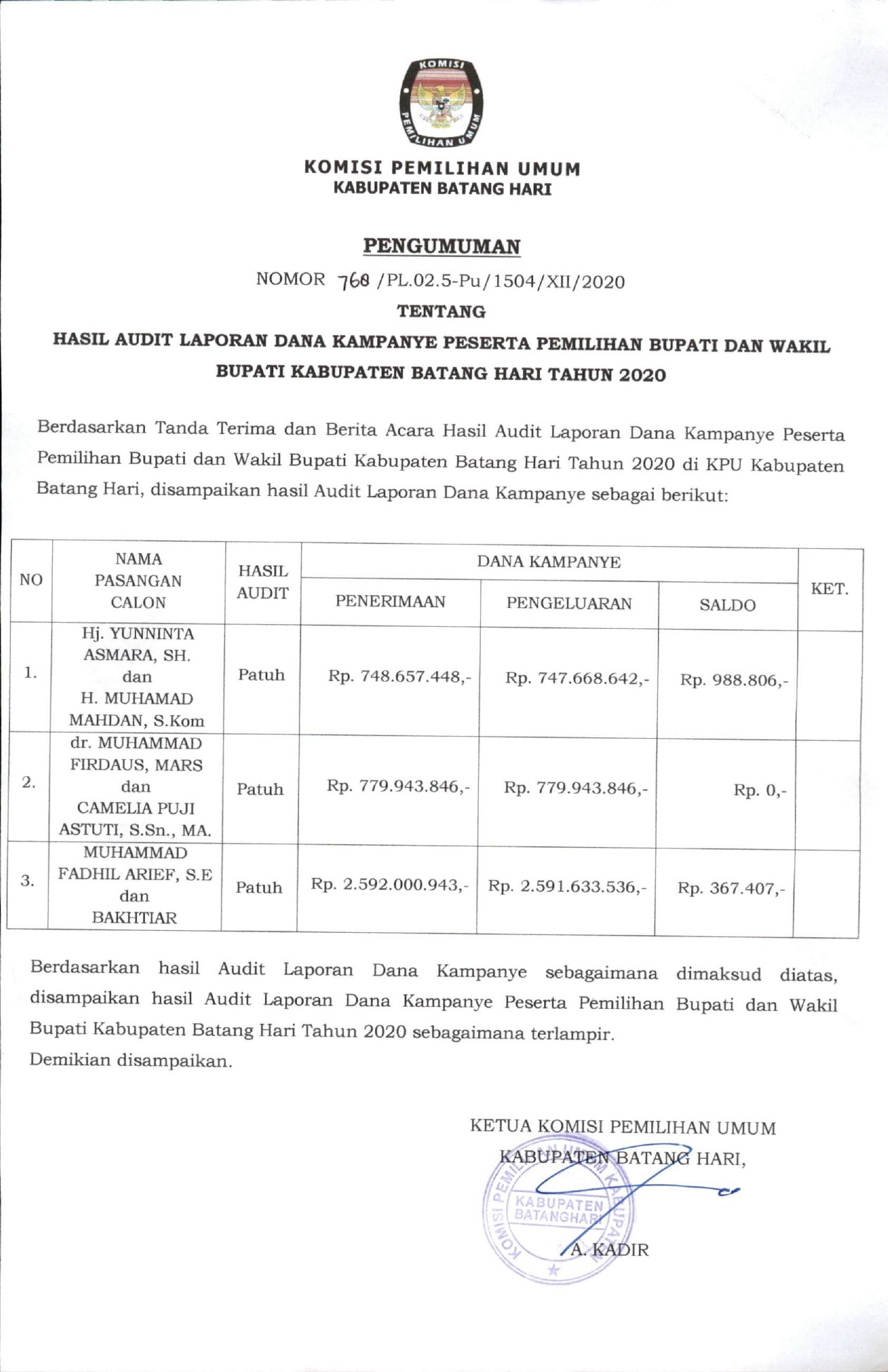 File pendukung Pengumuman Hasil Audit Dana Kampanye Pasangan Calon Muhammad Fadhil Arief, SE - Bakhtiar klik disini