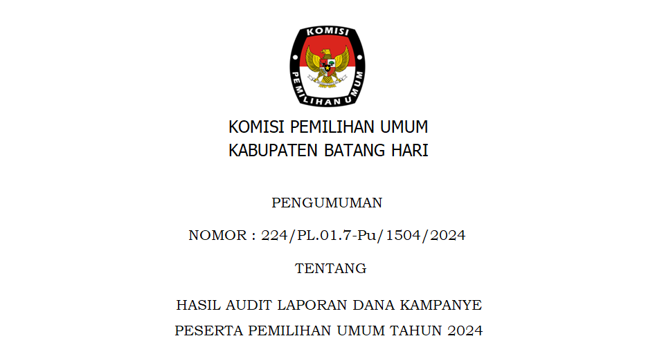 Berikut Berita Acara dan Sertifikat HAsil Penghitungan Perolehan Suara Tingkat Kabupaten Batang Hari :