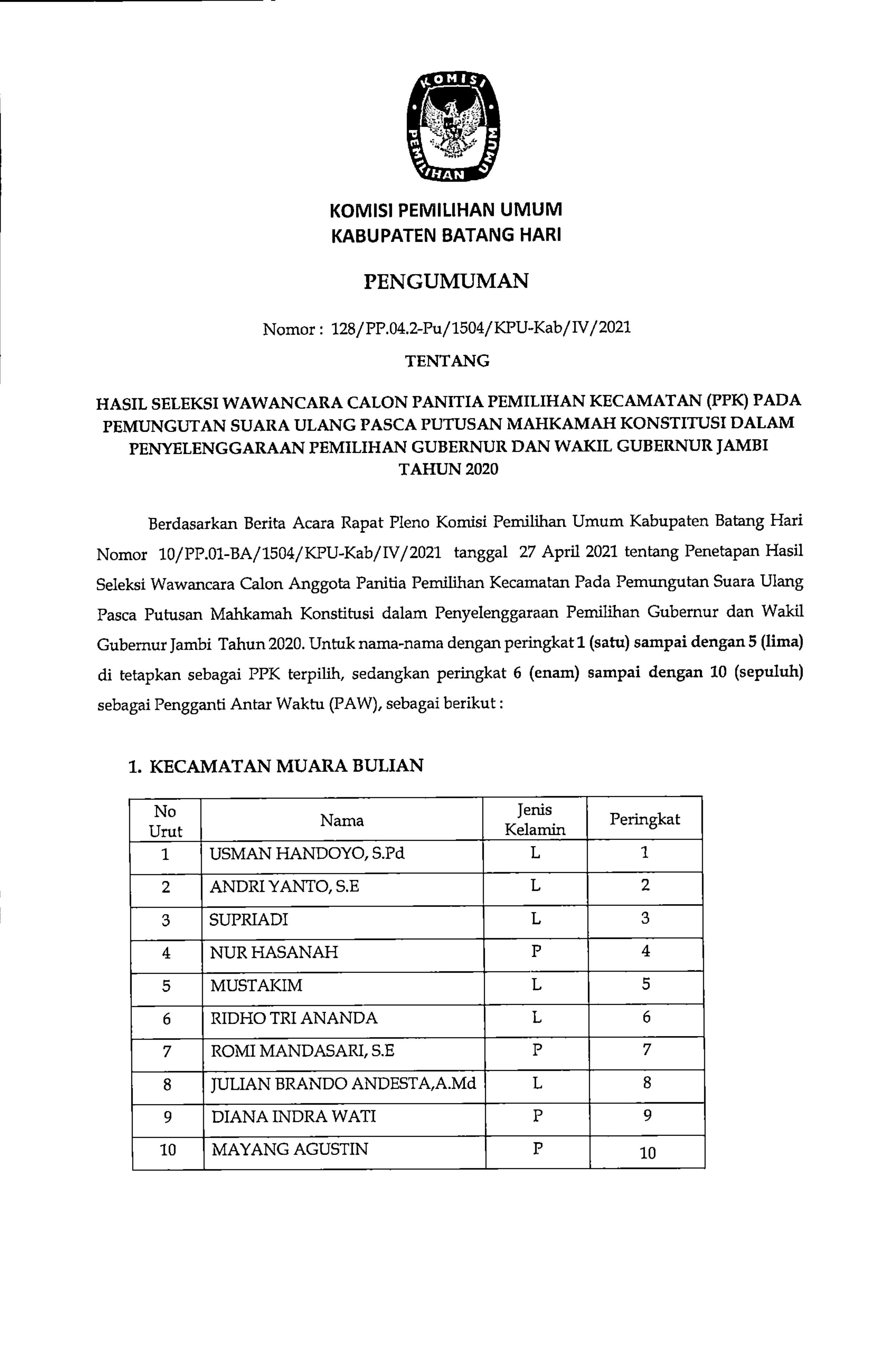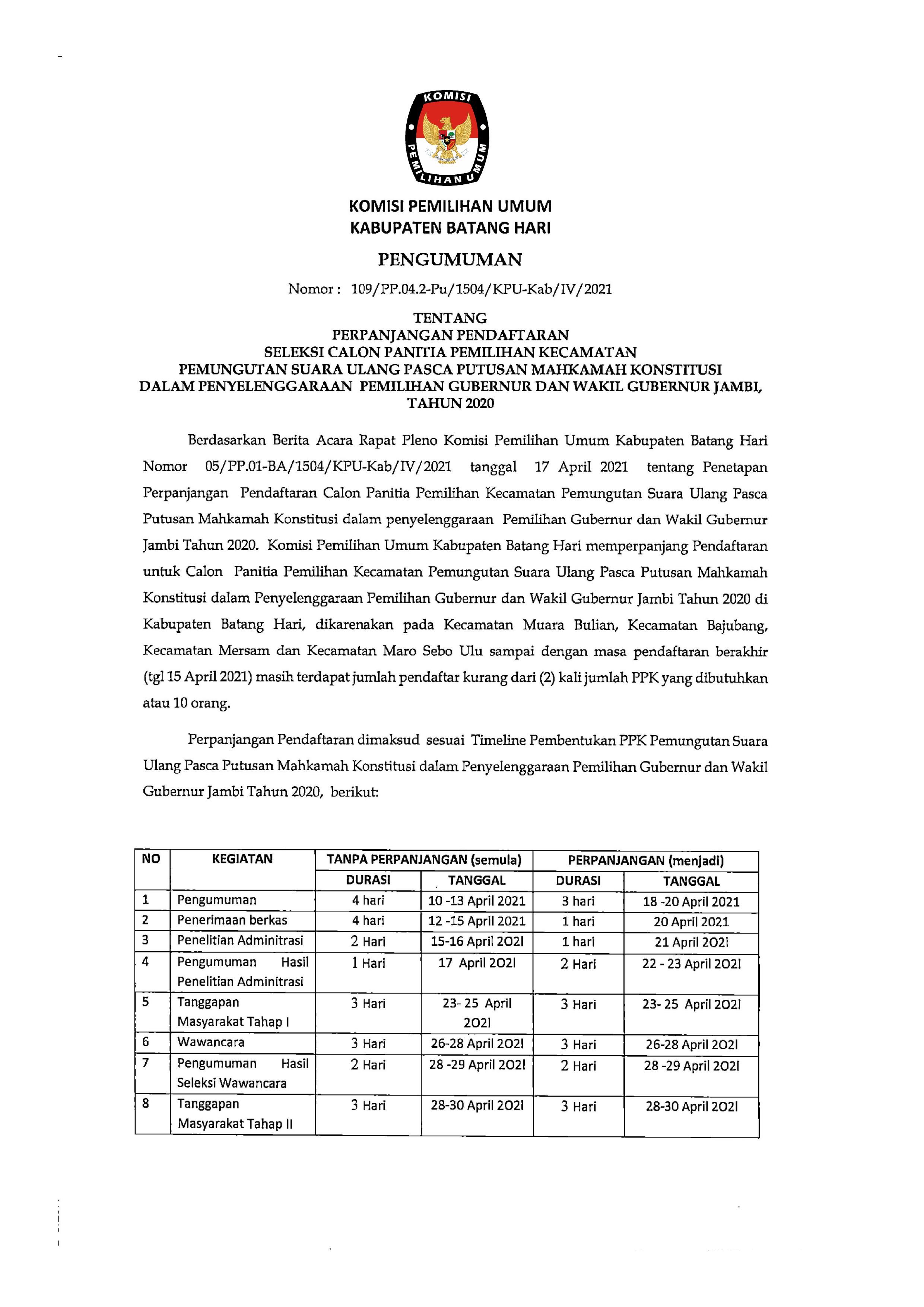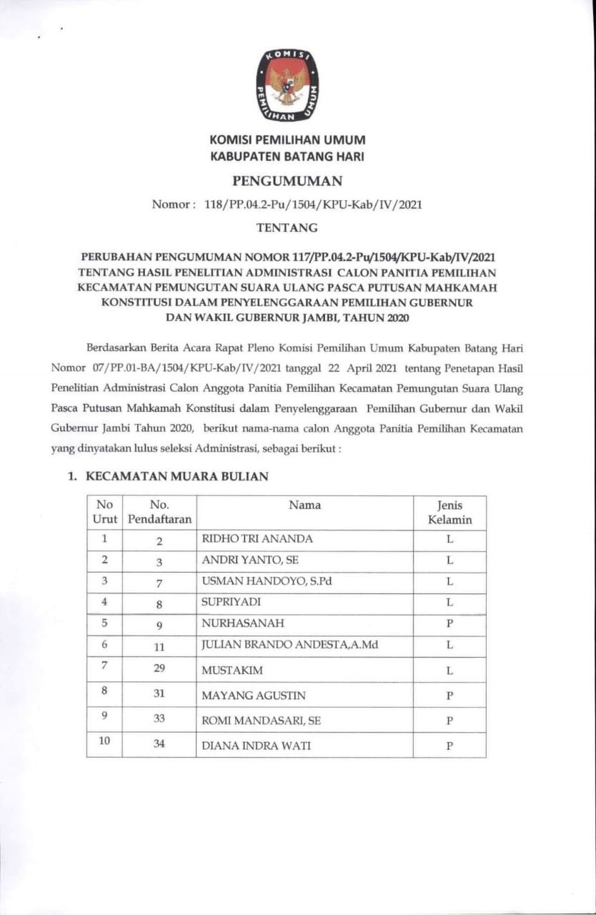 Dalam rangka melaksanakan ketentuan PKPU 6 Tahun 2021, KPU Kabupaten Batang Hari kembali melaksanakan kegiatan Rapat Koordinasi Rekapitulasi Daftar Pemilih Berkelanjutan Periode Desember 2021 di Aula Kantor KPU Kabupaten Batang Hari pada Rabu (5/1) dengan dihadiri oleh Ketua dan Anggota KPU Kabupaten Batang Hari, Sekretaris serta Subkoordinator Sekretariat KPU Kabupaten Batang Hari, Ketua Bawaslu Kabupaten Batang Hari, Perwakilan Polres Batang Hari, Lapas Klas II b Muara Bulian dan Kesbangpol Kabupaten Batang Hari.