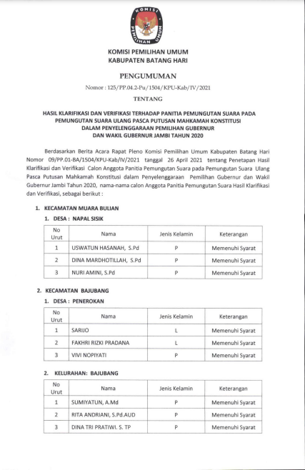 Divisi Perencanaan dan Data menambahkan bahwa KPU Kabupaten Batang Hari juga terus berupaya untuk memutakhirkan Daftar Pemilih Berkelanjutan di Kabupaten Batang Hari setiap bulannya dengan bekerja sama dengan pemerintah Desa, Motivator Ketahanan Keluarga, Sekolah-sekolah SLTA-sederajat dan Disdukcapil.