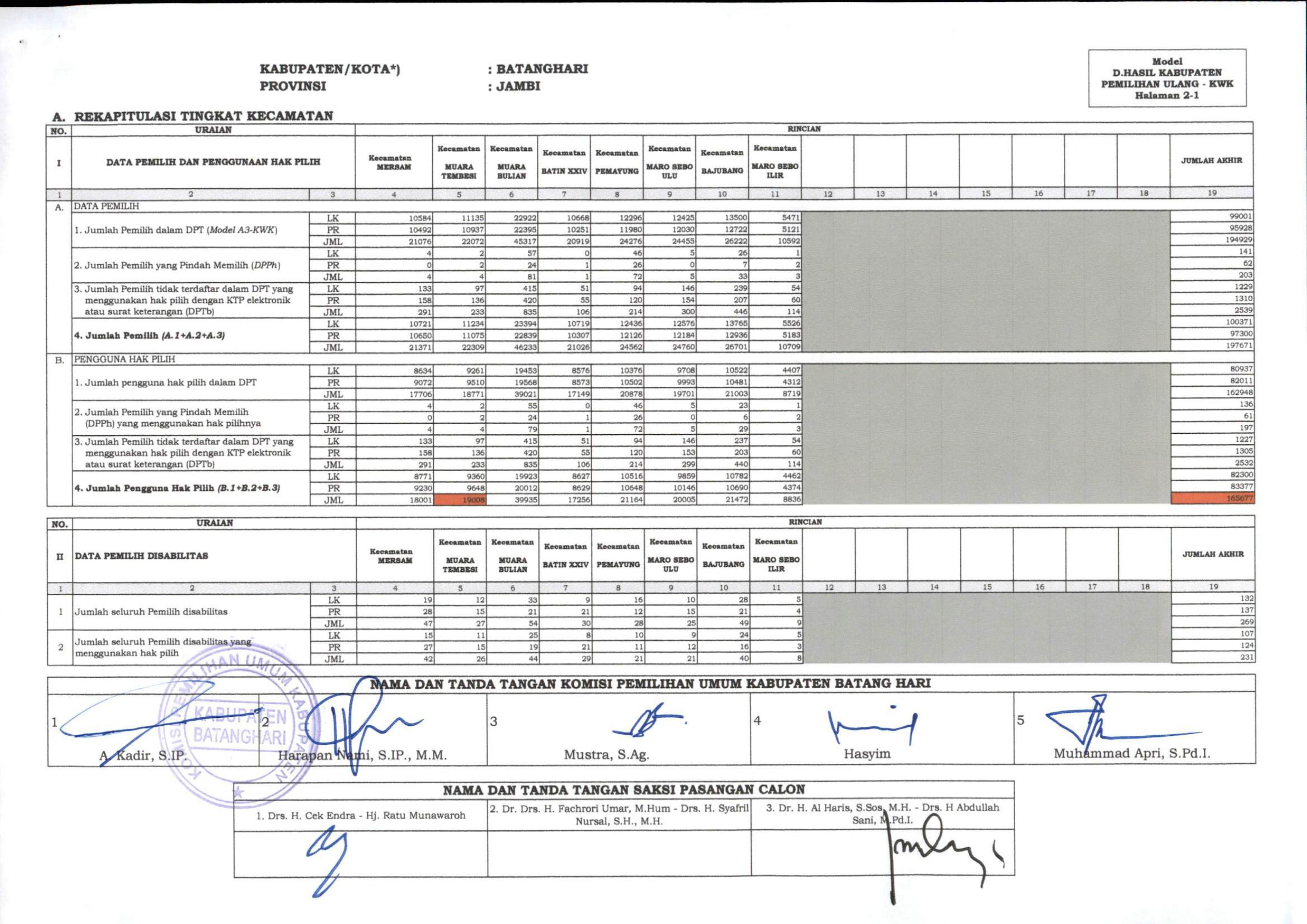 Adapun Rekapitulasi Daftar Pemilih Berkelanjutan Periode Desember 2021 yaitu sebanyak 196.888 Pemilih dengan rincian laki-laki berjumlah 99.909 Pemilih dan Perempuan berjumlah 96.979 Pemilih.